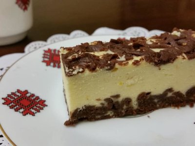 500 г сиру, 3 яйця , 2 білки (ті, що залишилися від тіста), а наступні рази, коли тісто вже готове і немає білків, даю 5 яєць), 200 г цукру, 100 г. масла, 2 ст. л. крохмалю, цедра лимона, апельсина і сік. Усі інгредієнти кладемо у блендер і збиваємо до однорідної маси. Готову масу виливаємо на тісто, зверху тремо ту одну частину тіста з морозилки і ставимо пекти у розігріту духовку на 180 градусів на 45-50 хв.