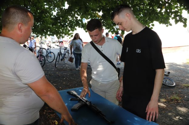 - ознайомитися зі зброєю — від макетів автоматів до пістолетів;