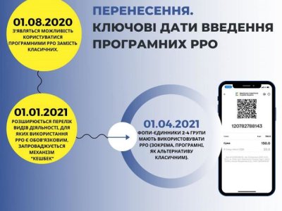 Законом України від 17.03.2020 р. №533-ІХ “Про внесення змін до Податкового кодексу України та інших законів України щодо підтримки платників податків на період здійснення заходів, спрямованих на запобігання виникнення і поширення коронавірусної хвороби (COVID-19)” внесено зміни у терміни запровадження програмних реєстраторів розрахункових операцій. До 1 серпня 2020 року перенесено введення в дію норм законодавства щодо запровадження програмних реєстраторів розрахункових операцій як альтернативу класичним РРО. Також до 1 серпня 2020 року продовжено можливість не застосовувати як класичні, так і програмні РРО приватним підприємцям єдиного податку другої – четвертої груп незалежно від обраного виду діяльності, обсяг доходу яких протягом календарного року не перевищує ліміт у 1000000 гривень. Винятком є реалізація технічно складних побутових товарів, що підлягають гарантійному ремонту, та реалізація лікарських засобів, виробів медичного призначення.