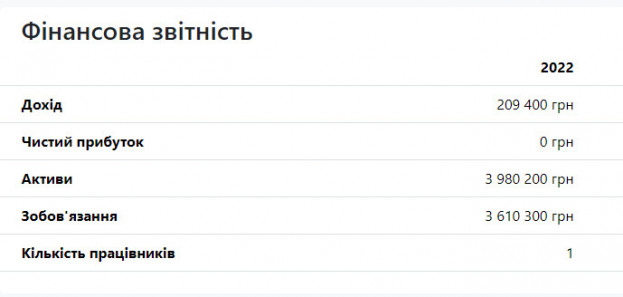 За даними “Опендатабот”, засноване це приватне підприємство у 1997 році. Його статутний капітал – 130 120 гривень. Основний вид діяльності – будівництво житлових і нежитлових будівель. Згідно фінансової звітності за 2022 рік на підприємстві був оформлений аж один працівник.