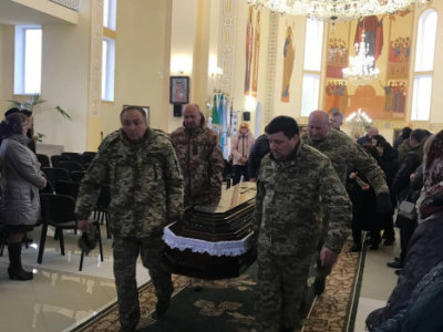 У храмі Покрови Пресвятої Богородиці у смт Гусятин відбулася заупокійна літургія за військовослужбовцем, а опісля – церемонія поховання.