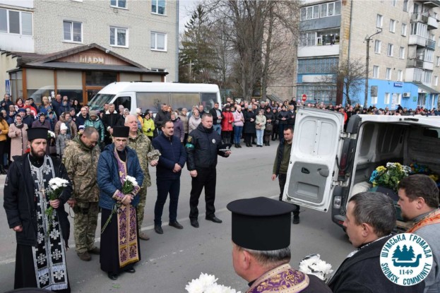Сьогодні, 19 квітня, жителі Шумської громади живим коридором на колінах, з лампадками у руках зустріли полеглого Героя, 38-річного військового Сергія Грищука, який загинув 3 квітня на Сході України, захищаючи від російського окупанта нашу державу.