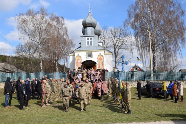 Похоронна літургія за упокій душі 38-річного воїна відбулася теж сьогодні у с. Велика Іловиця. Вшанувати пам’ять добровольця прийшли майже усі односельчани загиблого, жителі громади, представники влади, духовенство та військовослужбовці. Панахиду у Церкві Вознесіння Господнього відслужили священники ПЦУ на чолі з архієпископом Тернопільським і Кременецьким Нестором.