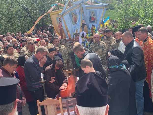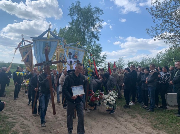 Труну з полеглим воїном, в супроводі чисельних жителів навколишніх сіл громади, воїнів, священнослужителів, місцевої влади, в супроводі військового оркестру проводили в останню путь.