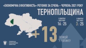 З 16-ого місця на 3-тє піднялась Тернопільська область. Таким чином вона увійшла в ТОП кращих регіонів за соціально-економічними показниками.