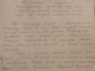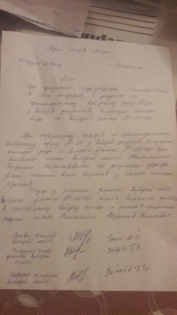 akt_dvk610480На одній із дільничних виборчих комісій у Залозецькій громаді Тернопільської області у виборчому бюлетені виявлено помилку у імені кандидата. Дільнична виборча комісія склала акт про допущення орфографічної помилки та видає виборцям надруковані бюлетені з невірним іменем претендента на посаду депутата.