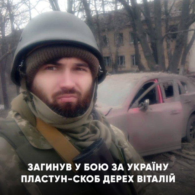 Маємо ще одну болючу втрату. Вчора, 28 травня, у ході бою у Бахмутському районі загинув Віталій Мирославович Дерех – пластун-скоб Тернопільський Пласт, лицар Ордену залізної остроги, молодший сержант.