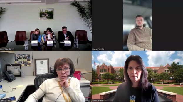 Практичними кейсами щодо підтримки ветеранів і їх сімей із заступником начальника обласної військової адміністрації Павлом Журбою та директором Відокремленого структурного підрозділу “Тернопільський фаховий коледж ТНТУ імені Івана Пулюя” Володимиром Калушкою поділилися фахівчиня з питань освіти Посольства США в Україні Віра Терновська та програмний директор робочої групи FSU Ukraine, науковий співробітник Інституту систем навчання Університету штату Флорида Вільма Фуентес під час онлайн-зустрічі.