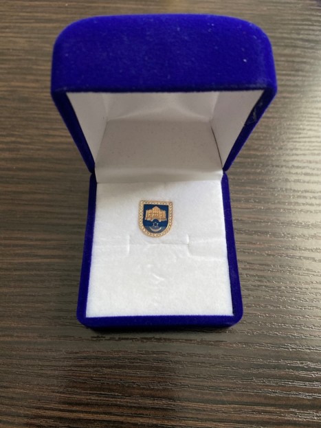 Згідно з технічними характеристиками, значок має бути виготовлений з комбінованого золота (жовте і біле) 585 проби із вставки з каменю цирконію – 38 штук. Значки мають бути розміром: ширина – 13 мм, довжина – 15 мм, товщина – 1,2 мм. Застібка значка має бути зроблена з матеріалу під імітацію золота. Загальна вага виробу повинна становити 1,39 грама. Значки мають бути розміщені у подарунковому футлярі синього кольору, матеріал футляра – оксамит (велюр).