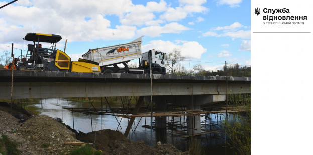 Дорожники ремонтують 51-метровий міст через річку Збруч на автомобільній дорозі Т-23-12 Гусятин – Городок. Підрядна організація влаштувала 2 шари асфальтобетонного покриття на проїзній частині штучної споруди.