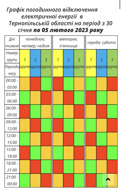 У ВАТ «Тернопільобленерго» оновили Графік погодинного відключення електричної енергії в Тернопільській області на тиждень з 30 січня по 05 лютого 2023 р.