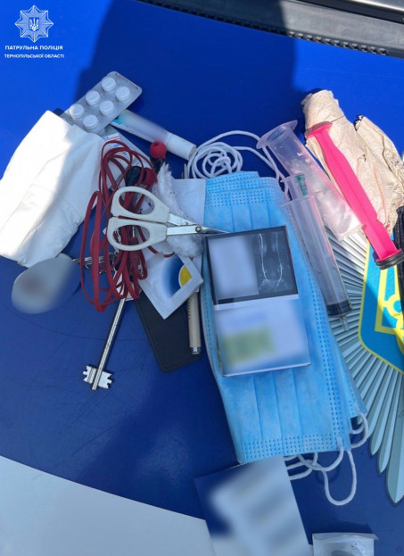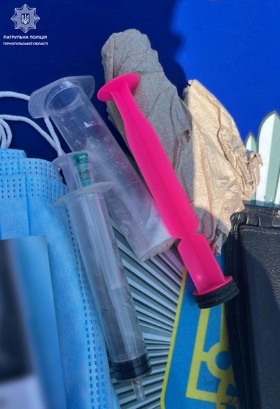 Поліцейські провели, відповідно до закону, поверхневу перевірку та виявили у чоловіка шприц з невідомою речовиною білого кольору, ймовірно, наркотичною та лікарські препарати, які обмежені в обігу.
