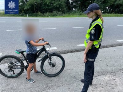 Тернопільські патрульні зупинили 9-річного хлопчика на велосипеді на міжнародній трасі