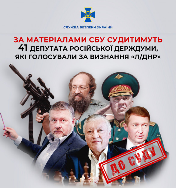 Прокурори Тернопільської обласної прокуратури скерували до суду обвинувальні акти стосовно депутатів Держдуми РФ за фактом посягання на територіальну цілісність і недоторканність України (ч. 3 ст. 110 КК України).