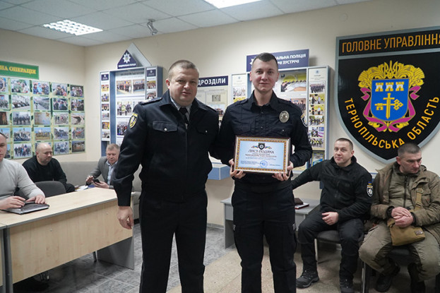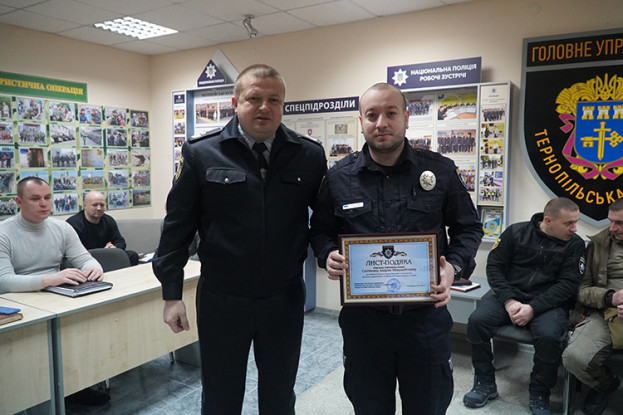 За особистий внесок у справу боротьби зі злочинністю, високий професіоналізм та ефективні дії при розкритті злочинів начальник ГУНП в Тернопільській області Олександр Богомол відзначив листами-подяками працівників патрульної поліції краю.