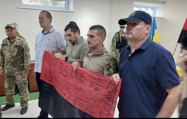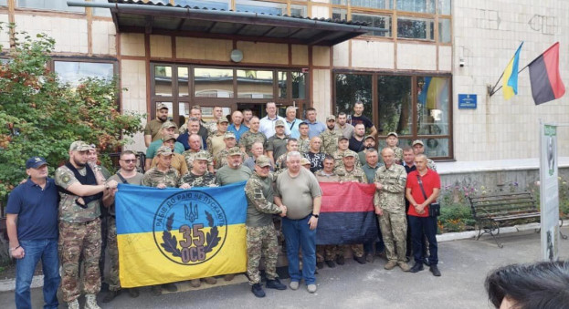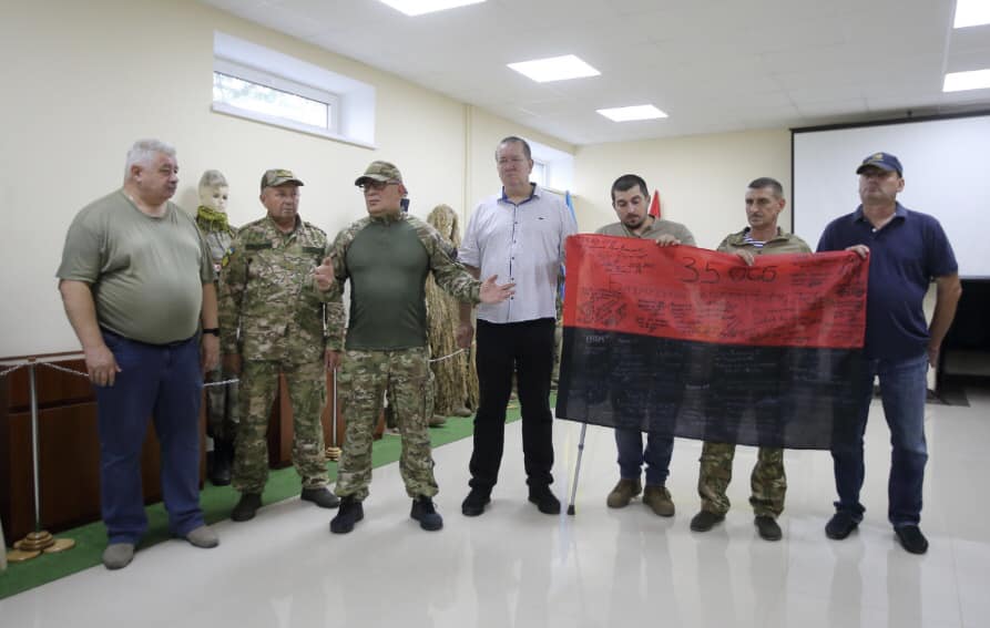 Нещодавно з різних куточків Тернопільщини до Тернополя зʼїхалися воїни в/ч А 4048 (35 ОСБ), щоби разом з заступником командира в/ч майором Євгеном Степановим (псевдо “Тарас”) передати до музею Національно визвольної боротьби Тернопільщини червоно-чорний прапор боротьби з підписами наших славних воїнів.
