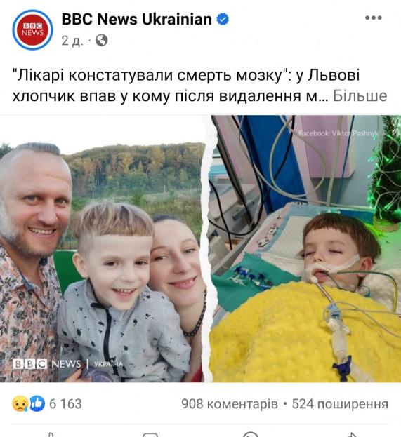 – Я показав, що його ведуть не туди, відкрив йому очі. Молюся, щоби і його синочок Велес хрещений Іван, Іванко, щоби він одужав і відкрив очі, заговорив, обняв батька, щоби все в них було добре. Знаю, що поліція Львівської області на даному етапі допоможе розмотати цей клубок. Дивно мені що там робила, а фактично нічого не робила одна адвокатка зі Львова, тим більше, що вона завжди в судах на стороні лікарів. А тут захист потерпілих. А головне я направив пана Віктора до надійної Людини, до пані Галина Янко з якою ми багато разом пройшли… Вона допоможе і не зрадить. Процес пішов, – написав тернополянин.