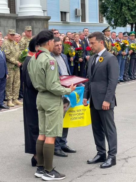 Сьогодні, 29 серпня, в Києві відбулося урочисте оголошення та вручення присвоєних державних нагород, одна з яких – звання “Герой України” – посмертно присвоєна загиблому добровольцю з Тернополя Віктору Гурняку. Нагороду батькам загиблого військового особисто вручав президент України Володимир Зеленський.