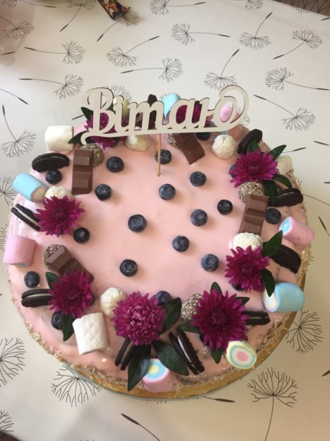 Крем: 1 л сметани, 0,5 л цукру, 2 пачки галаретки (вишневої). Оскільки галаретка буде гарячою, потрібно зачекати, допоки охолоне, а після цього готову суміш збити міксером.