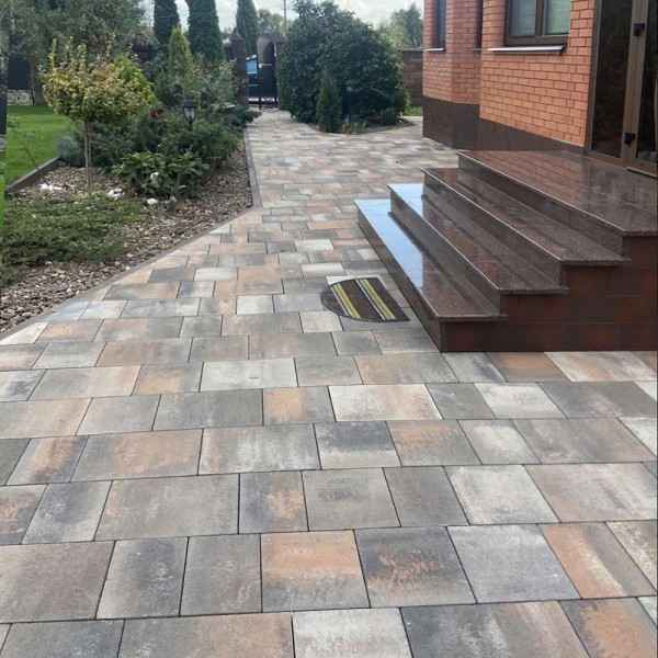 - Міцність та довговічність Завдяки використанню сучасних технологій виробництва, плитка має високу міцність, що дозволяє їй витримувати значні навантаження. Це робить її ідеальним вибором для облаштування доріжок, площ та паркінгів.