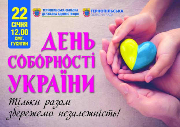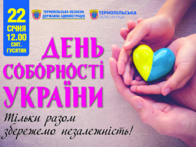 Одночасно заходи до Дня соборності України проведуть в усіх районах області. Також під час святкування в Гусятинському районі відбудеться відкриття виставки до 100-річчя Української революції.