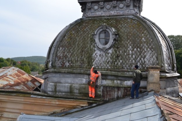 – Минулого року розпочали ремонт палацу та перекриття даху. Це були першочергові заходи, щоб ліквідувати протікання. Адже внаслідок підтоплення у будівлі почали руйнуватися стіни та внутрішні конструкції. Зараз обласна рада виділили 750 тис. грн. на завершення робіт – на заміну покрівлі та декративних елементів купола, – каже Віктор Овчарук.