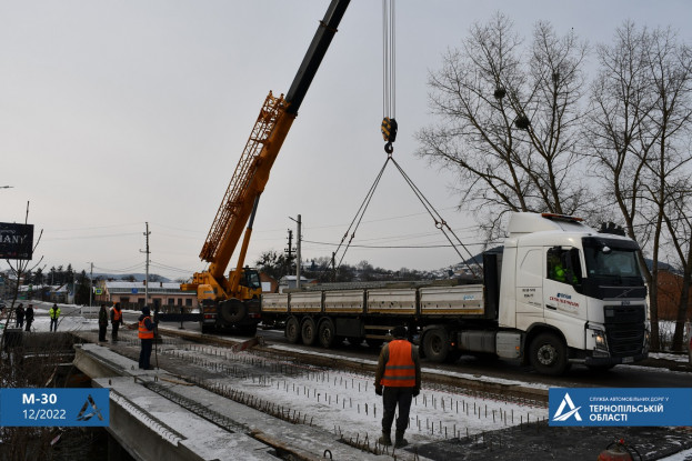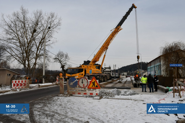 На ділянці траси М-30 Стрий – Ізварине у межах населеного пункту Бережани капітально ремонтують 2 мости (18 та 36 метрів) через річку Золота Липа.