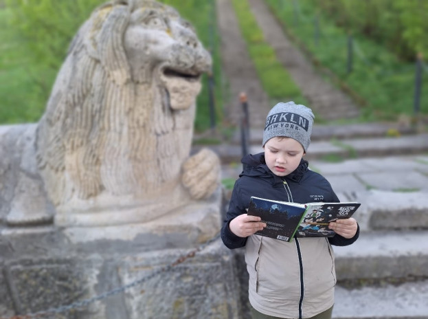 – На першій фотографії Святослав, який дуже любить читати. Це не постановочне фото. Навпаки – прошу прибрати книгу, щоби сфотографувати біля замку, а він не може відірватися. Читає дома, на прогулянці, у лікаря на прийомі… На другому фото директорка і заступниця директорки Тернопільської обласної бібліотеки для дітей, які вважають, що Святослав “може написати в бібліотечних книжках “слава росії”, тому побоюються видавати йому книжки, – розповіла Катерина Посохова.