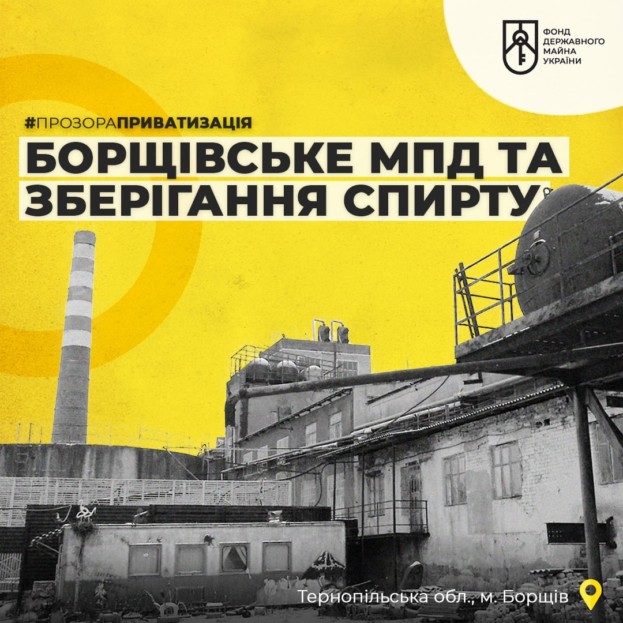 15 листопада відбудеться аукціон з продажу об’єкта малої приватизації – окремого майна Борщівського місця провадження діяльності та зберігання спирту ДП “Укрспирт”, що знаходиться за адресами: м. Борщів, пров. Січових Стрільців, 2 та м. Борщів, вул. Степана Бандери, 140 та перебуває на балансі ДП “Укрспирт”.