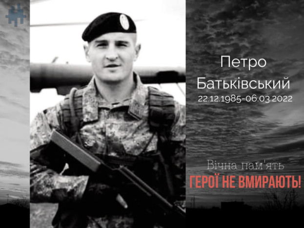 Захищаючи рідну країну від ворога, у бою в смт Піски Донецької області загинув військовий, лейтенант, командир 1 мотопіхотного взводу 3 мотопіхотної роти Петро Анатолійович Батьківський.