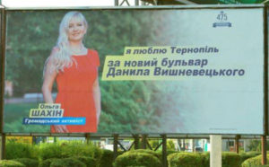 Так-так, тої самої «відомої активістки» та «зірки білбордів» Ольги Шахін, яка нині є чинною депутаткою Тернопільської міської ради та головою постійної комісії з питань економіки, промисловості, транспорту і зв’язку, контролю за використанням комунального майна , зовнішніх зв’язків, підприємницької діяльності… (загалом половину роботи міської ради «звалила» на себе). Незважаючи на те, що законодавством заборонене подвійне громадянство (стаття 4 Конституції України), пані Шахін вже 16! років живе мінімум на дві країни (може має ще якісь паспорти?) і до того ж ретельно тримає це в таємниці.
