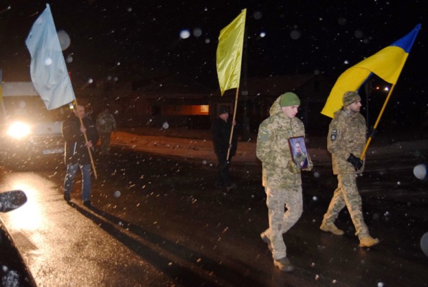 Жителі громади зустріли труну із Героєм, утворивши живий коридор на колінах. Державні прапори були приспущені на знак скорботи. Труну з тілом Героя військові урочисто занесли на площу Героїв Майдану у Шумську під сакральну мелодію «Плине кача».