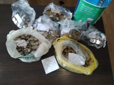 Разом зібрано коштів – монетками по 10, 50 копійок та 1, 2, 5, 10 грн – 14 334,40 грн.