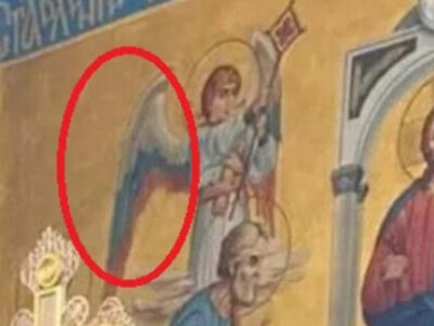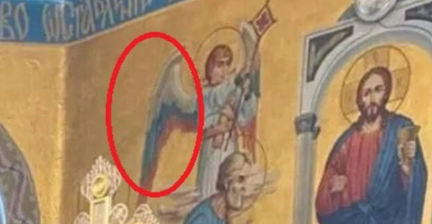 За словами священника, на світлині, зробленій у вівтарній частині храму, зафіксовано священнослужителя УПЦ МП, а на задньому плані чітко видно фігуру ангела. Крила зображення пофарбовані у три кольори, які повністю збігаються з кольорами державного прапора країни-агресора.