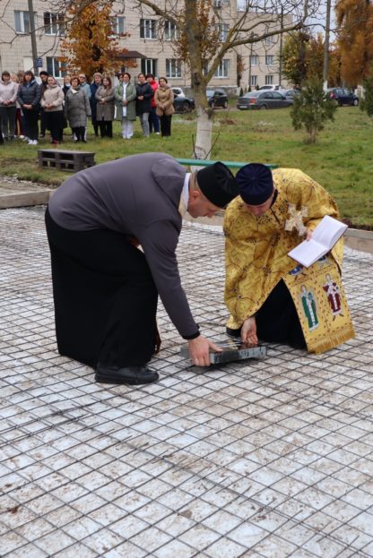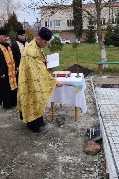 Разом місцева влада з духовенством та працівникам медичного закладу зібралися на урочисте освячення наріжного каменю та території під будівництво каплиці.