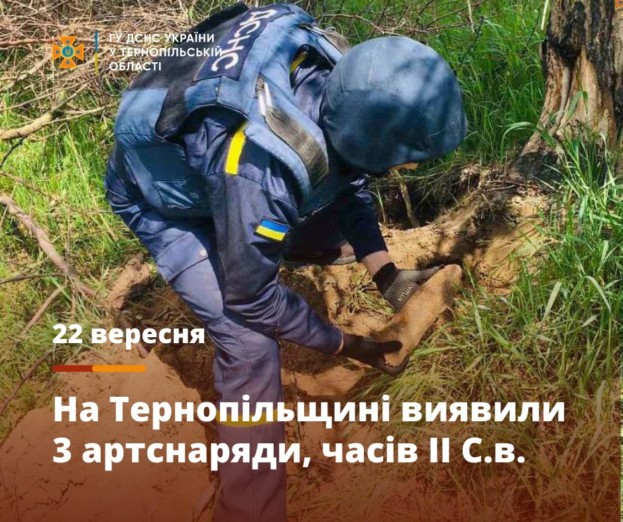 22 вересня в лісовому масиві поблизу м. Теребовля (на місці НС) групою піротехнічних робіт аварійно-рятувального загону спеціального призначення додатково виявлено, вилучено та зосереджено в безпечному місці 3 артилерійські снаряди, часів Другої світової війни, калібром 88 мм.