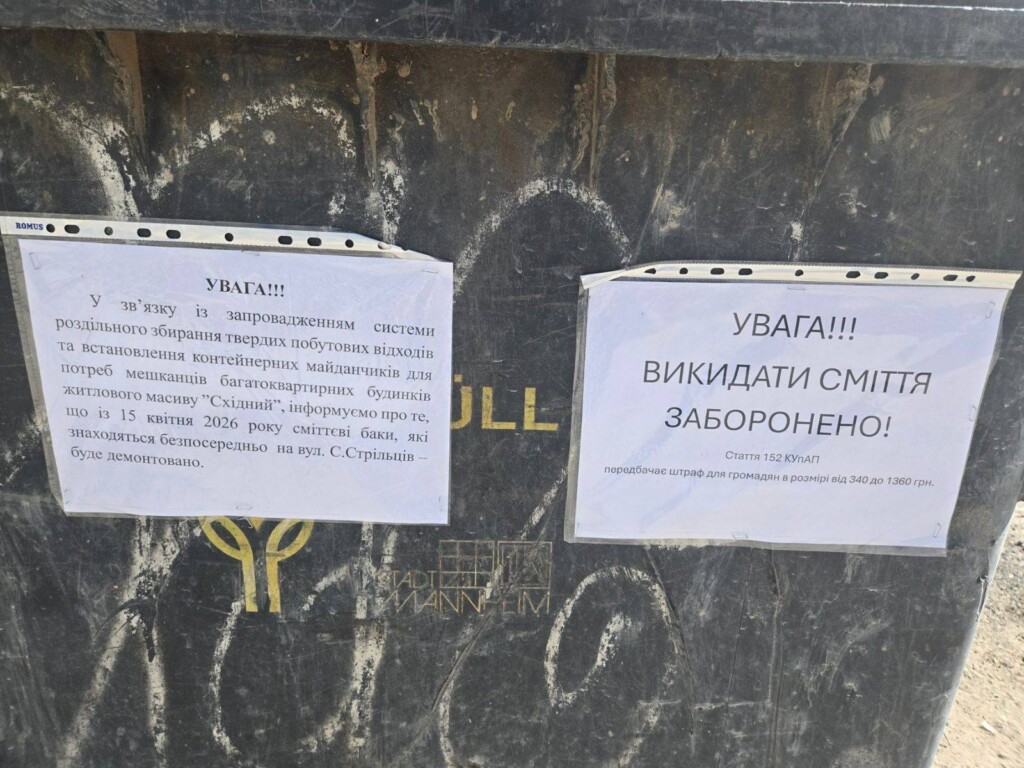 До уваги мешканців мікрорайону “Східний”. Контейнери по вул. Січових Стрільців будуть ліквідовані. Викидання сміття в цих місцях буде фіксуватися відеофіксацією, з подальшим накладанням штрафу, – йдеться в повідомленні міської ради.