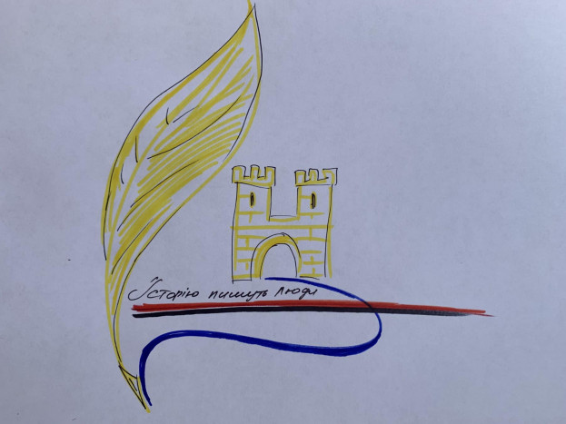 Логотип 3. На логотипі зображені основні елементи – замок і перо. Замок розміщений над рікою (синя хвилька). Ця сама хвилька, виходячи з-під пера ), означає написання історії міста, громади, плин часу . Перо у символізмі означає безсмертя, відродження, продовження роду. Додаткові елементи – червоно-чорні лінії означають землю, кольори боротьби і те, що на теренах нашої громади був проведений останній бій УПА. Слоган “Історію пишуть люди” або  “Історію пишемо ми” означає відповідальність та участь кожного в розвитку громади, а також людей, які прославили Підгаєччину в Україні та за її межами.