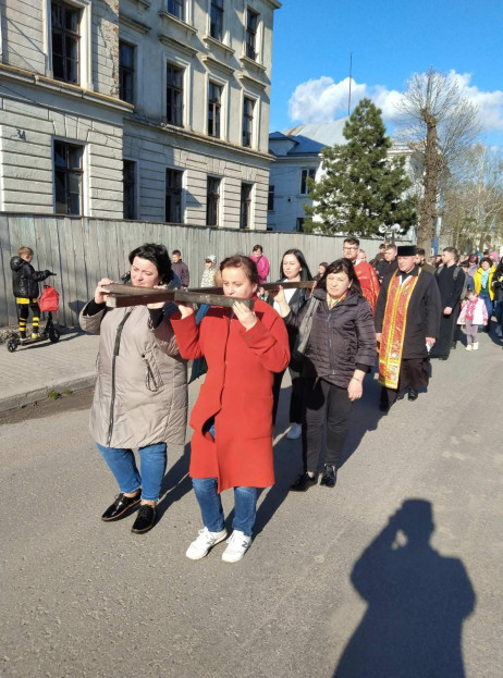 Хрест по черзі несли діти, парафіяни церков, працівники установ, організацій, підприємці, усі бажаючі, єднаючись у спільній молитві, роздумуючи під Хрестом про біль, яку терпів Господь, про біль, яку терпить Україна, і кожен про свої власні болі і терпіння.