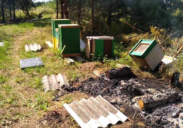 Із 90 вуликів уціліло лише вісім. Власник розповідає, що коли побачив згарище, у нього відняло мову, й він одразу викликав поліцію. Та з’ясувала, що це був підпал. Найімовірніше, паліям не вистачило горючої речовини, тому інші вулики, які не згоріли, вони просто поперекидали.