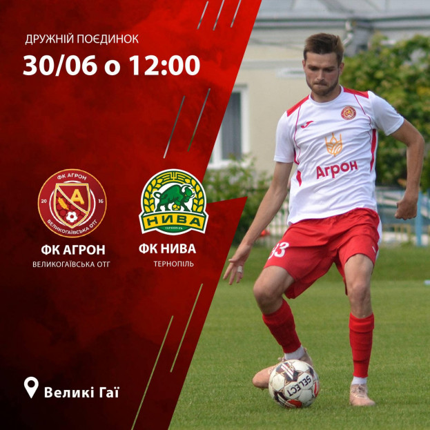 У неділю, 30 червня, у Великих Гаях відбудеться матч між чемпіоном Тернопільської області останніх трьох років та лідером нинішньої вищої обласної ліги – великогаївським «Агроном» та єдиною на сьогодні професійною футбольною командою Тернопільщини – «Нива».