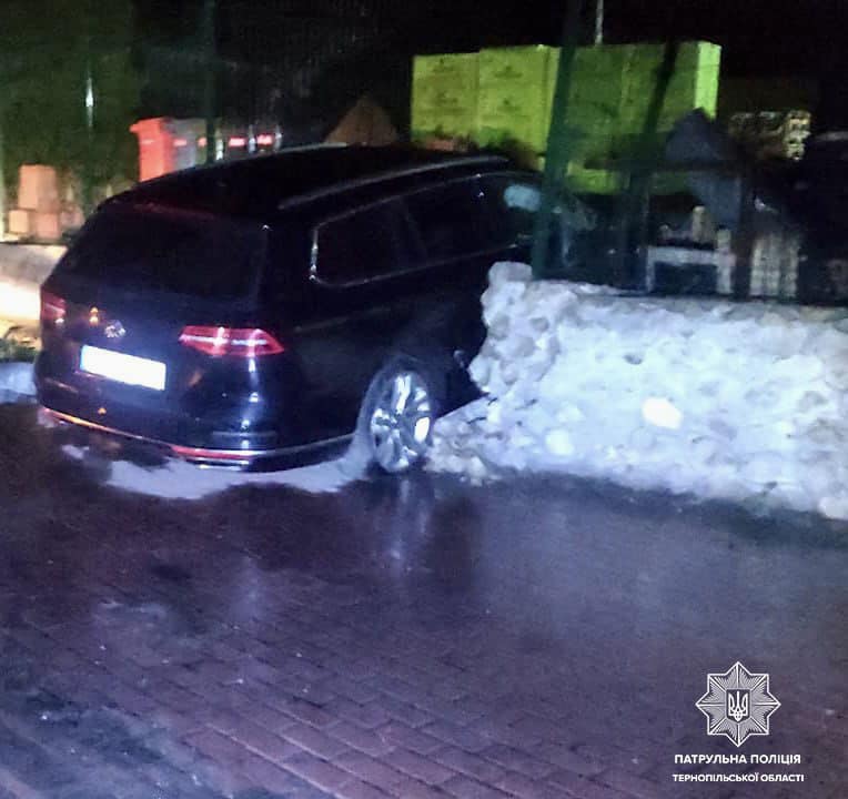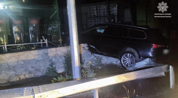 Як повідомляє патрульна поліція Тернопільської області, водій автомобіля Volkswagen не впорався з керуванням, порушив ПДР та здійснив наїзд на огородження. На щастя, внаслідок ДТП ніхто не постраждав.