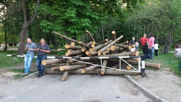 У парку Національного відродження протистояння триває. Щоби захистити територію від будівництва так званого спортивного комплексу, місцеві активісти продовжують чергувати навколо спірної ділянки, за що вже поплатилися повістками в поліцію та навіть… обмеженням волі.
