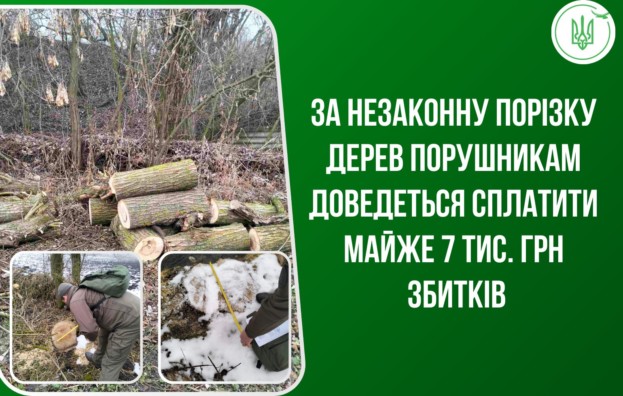 Сума заподіяних збитків становить 6 675 грн. Порушників, що здійснили самовільну зрізку 10-ти дерев, притягнуто до адміністративної відповідальності за ст. 153 КУпАП.