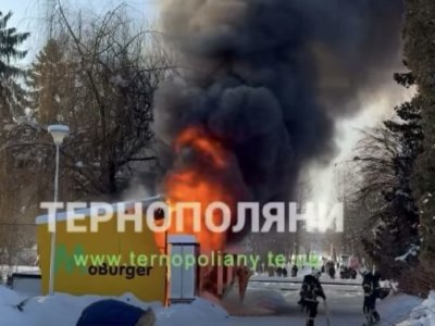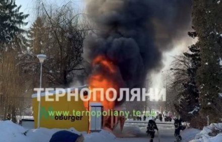 Сьогодні, 18 січня, у тернопільському парку Шевченка поблизу пам’ятника Степану Бандері спалахнув кіоск «Moburger».
