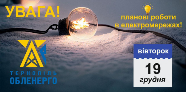 У деяких населених пунктах Тернопільщини сьогодні, 19 грудня, плануються роботи для поліпшення забезпечення електроенергією.