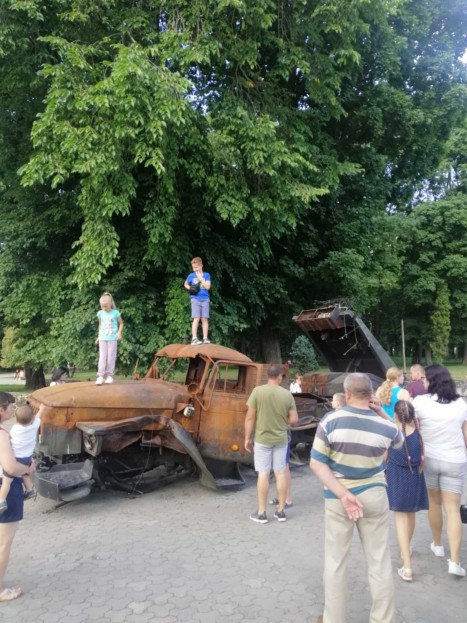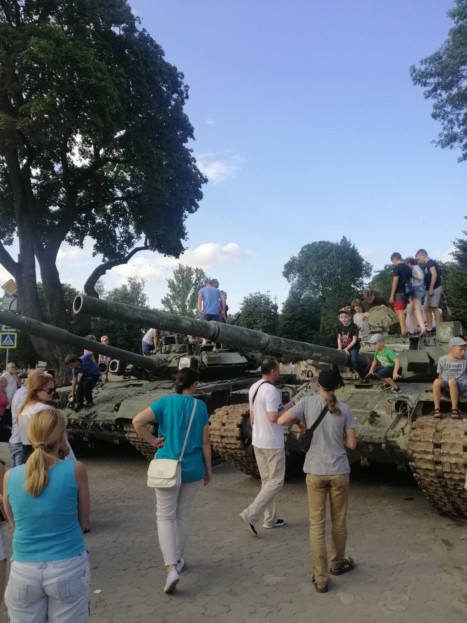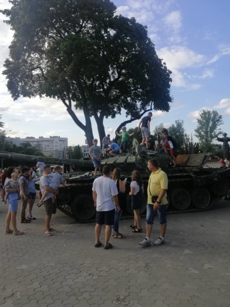 Упродовж вихідних сюди приходили сотні тернополян – вони лазять зверху танків, заглядають усередину, фотографуються.