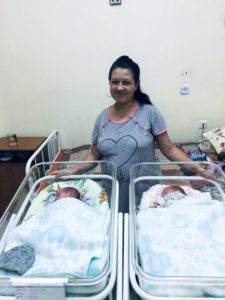 А 25 липня на 32 тижні вагітності на світ передчасно з’явилося двоє хлопчиків Артем та Валентин. На момент народження Артем важив 1700 гр. при зрості 43 см, а Валентин мав вагу 1640 гр. і ріст – 42 см.