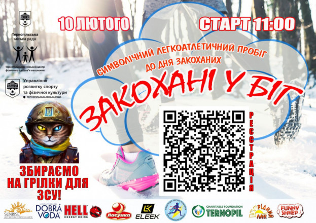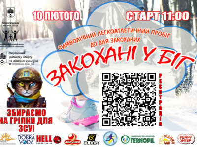 • До Дня усіх закоханих, у Тернополі 10 лютого відбудеться передсвятковий легкоатлетичний забіг «Закохані у біг» на дистанцію 5 км, під час якого будуть збирати кошти для ЗСУ.