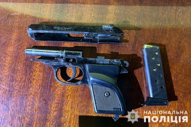 На місце події виїхала слідчо-оперативна група поліції. Дізнавачі вилучили у зловмисника предмет, схожий на пістолет та магазин до нього, в якому знаходилося 5 набоїв.
